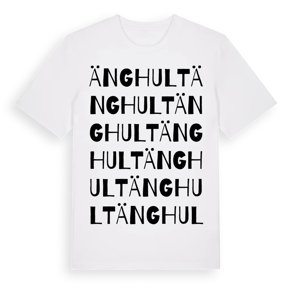 Änghult ordlek t-shirt är inspirerad av Änghult i Kalmar län, Sverige. Tröjan är designad för dig som har en speciell koppling till platsen – oavsett om du bor här, har rötterna här eller bara älskar Änghult.