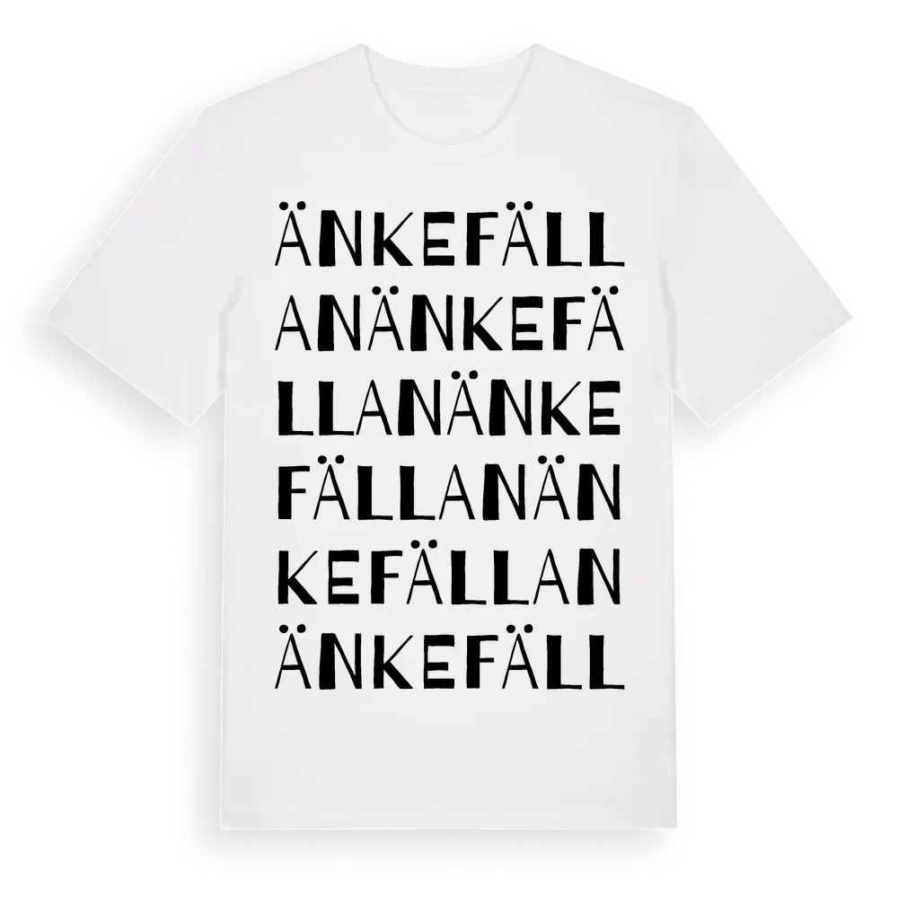 Änkefällan ordlek t-shirt är inspirerad av Änkefällan i Kalmar län, Sverige. Tröjan är designad för dig som har en speciell koppling till platsen – oavsett om du bor här, har rötterna här eller bara älskar Änkefällan.