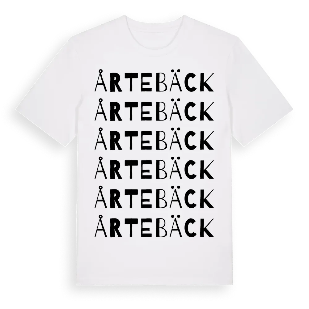 Årtebäck ordlek t-shirt är inspirerad av byn Årtebäck i Kalmar län, Sverige. Tröjan är designad för dig som har en speciell koppling till platsen – oavsett om du bor här, har rötterna här eller bara älskar Årtebäck.