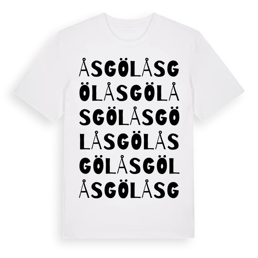 Åsgöl ordlek t-shirt är inspirerad av Åsgöl i Kalmar län, Sverige. Tröjan är designad för dig som har en speciell koppling till platsen – oavsett om du bor här, har rötterna här eller bara älskar Åsgöl.