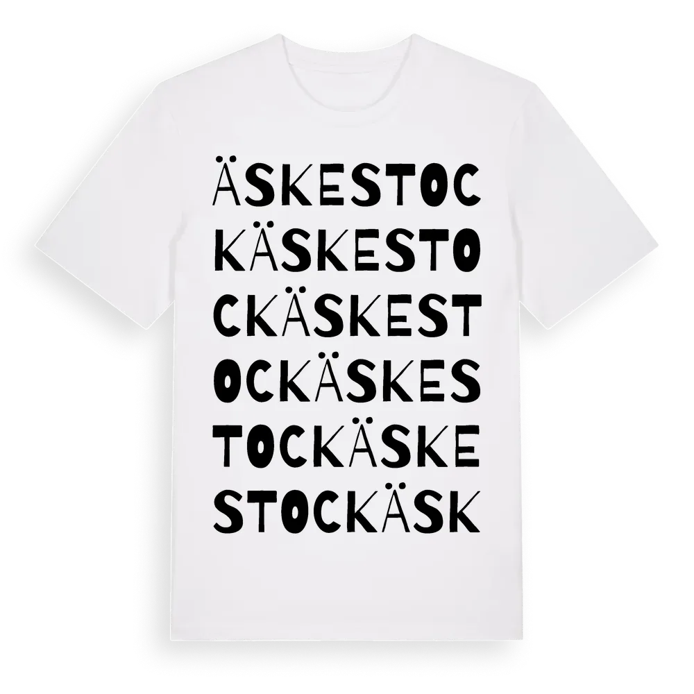Äskestock ordlek t-shirt är inspirerad av Äskestock i Kalmar län, Sverige. Tröjan är designad för dig som har en speciell koppling till platsen – oavsett om du bor här, har rötterna här eller bara älskar Äskestock.