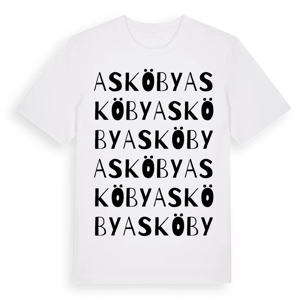 Askö By ordlek t-shirt är inspirerad av byn Askö By i Kalmar län, Sverige. Tröjan är designad för dig som har en speciell koppling till platsen – oavsett om du bor här, har rötterna här eller bara älskar Askö By.