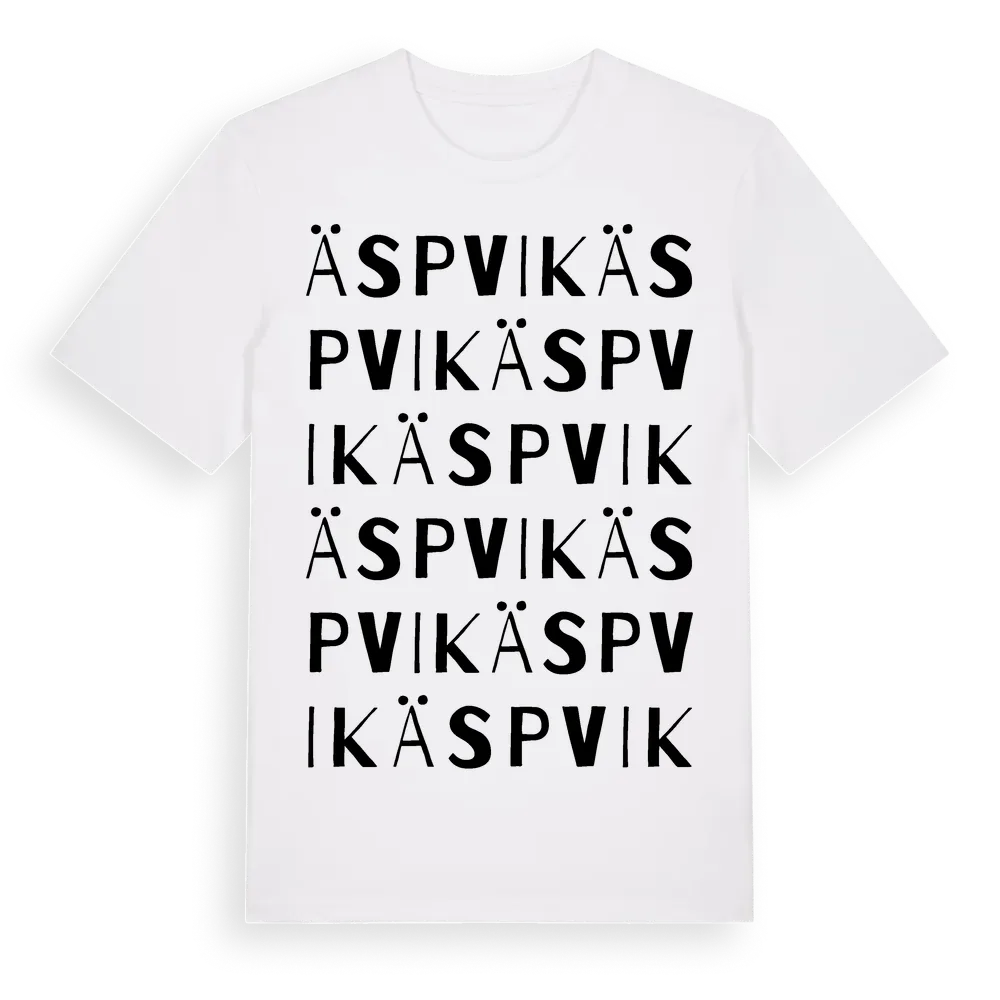 Äspvik ordlek t-shirt är inspirerad av Äspvik i Kalmar län, Sverige. Tröjan är designad för dig som har en speciell koppling till platsen – oavsett om du bor här, har rötterna här eller bara älskar Äspvik.