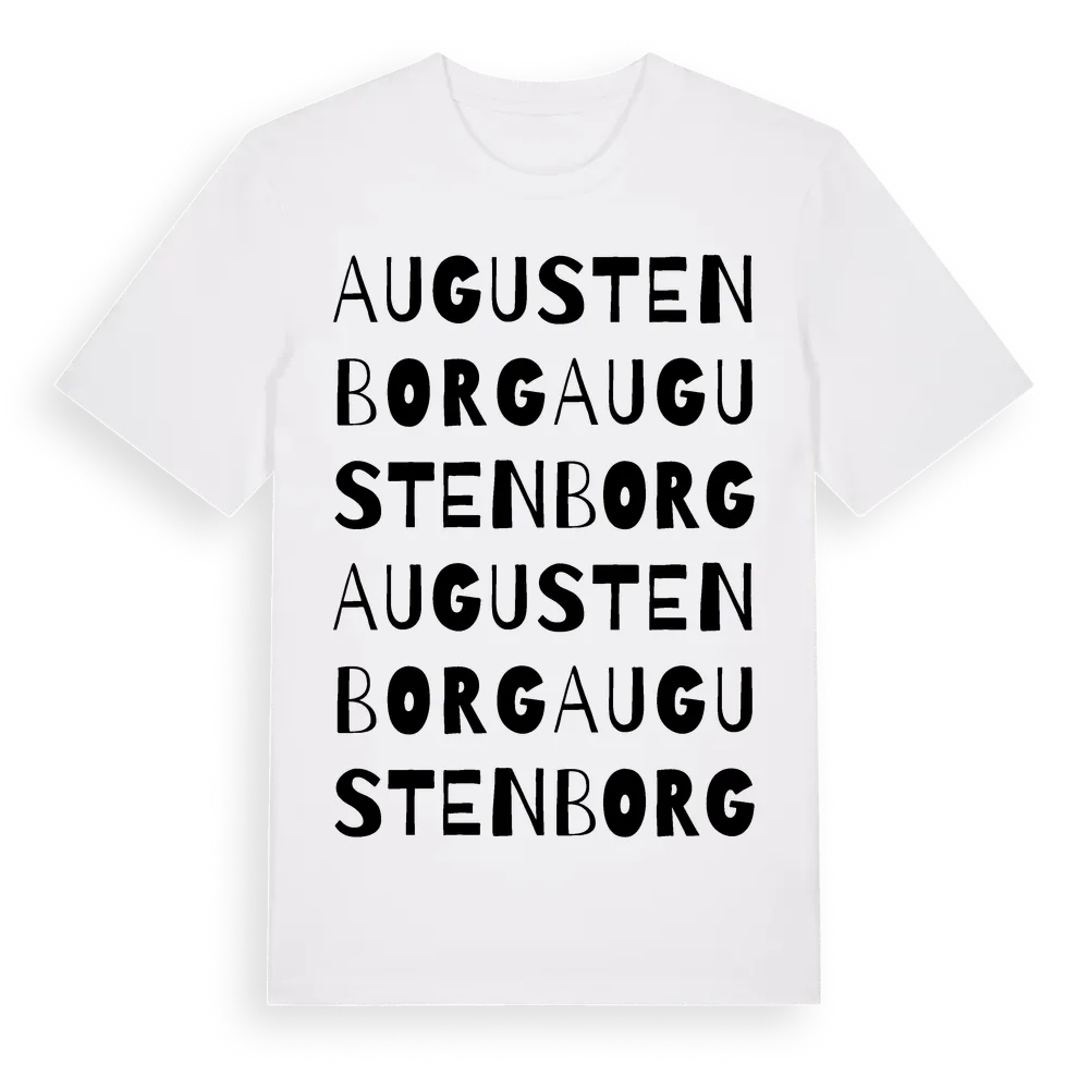 Augustenborg ordlek t-shirt är inspirerad av Augustenborg i Kalmar län, Sverige. Tröjan är designad för dig som har en speciell koppling till platsen – oavsett om du bor här, har rötterna här eller bara älskar Augustenborg.