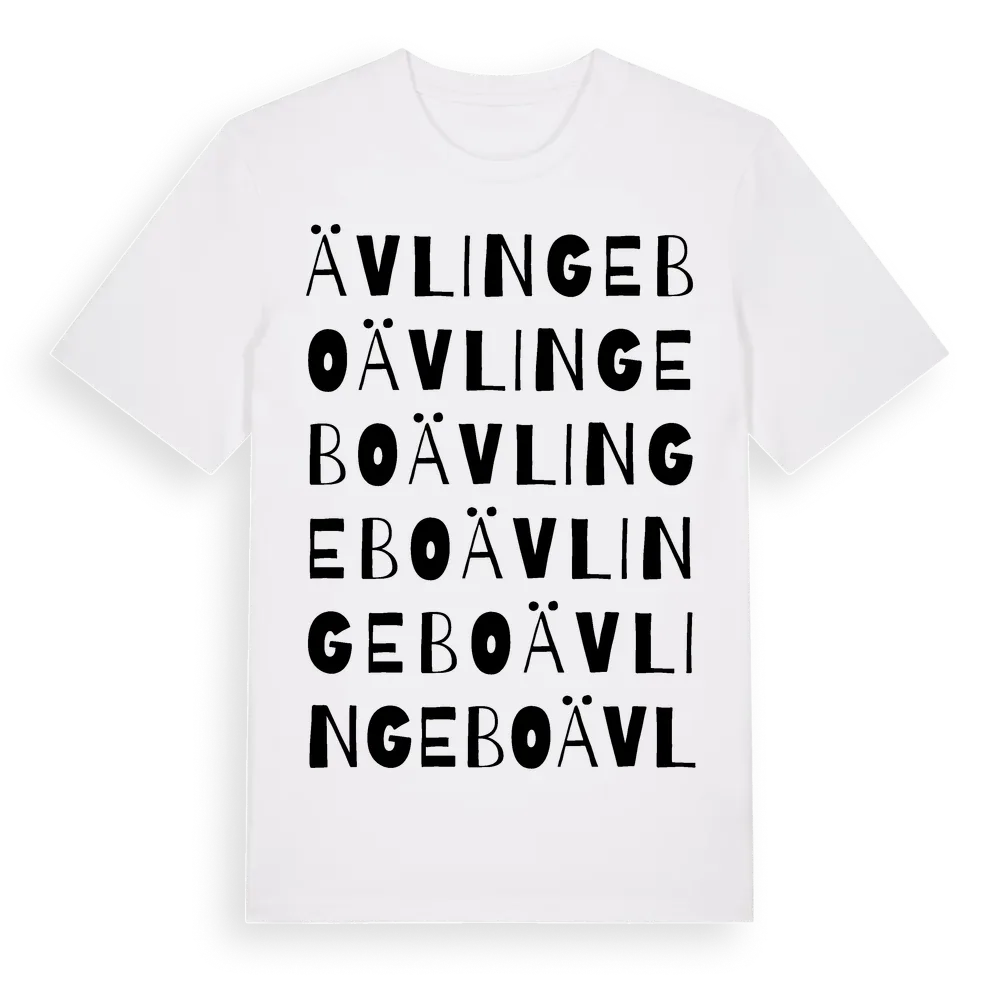 Ävlingebo ordlek t-shirt är inspirerad av byn Ävlingebo i Kalmar län, Sverige. Tröjan är designad för dig som har en speciell koppling till platsen – oavsett om du bor här, har rötterna här eller bara älskar Ävlingebo.