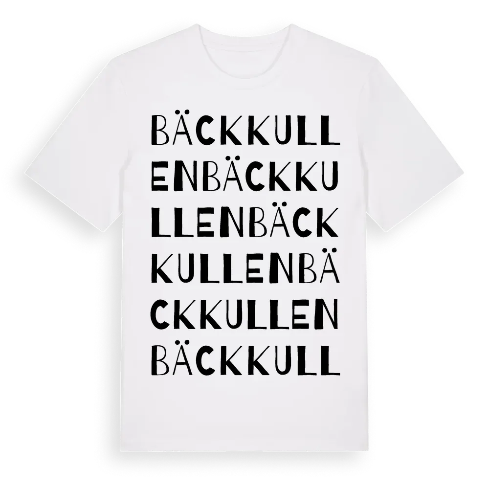 Bäckkullen ordlek t-shirt är inspirerad av Bäckkullen i Kalmar län, Sverige. Tröjan är designad för dig som har en speciell koppling till platsen – oavsett om du bor här, har rötterna här eller bara älskar Bäckkullen.