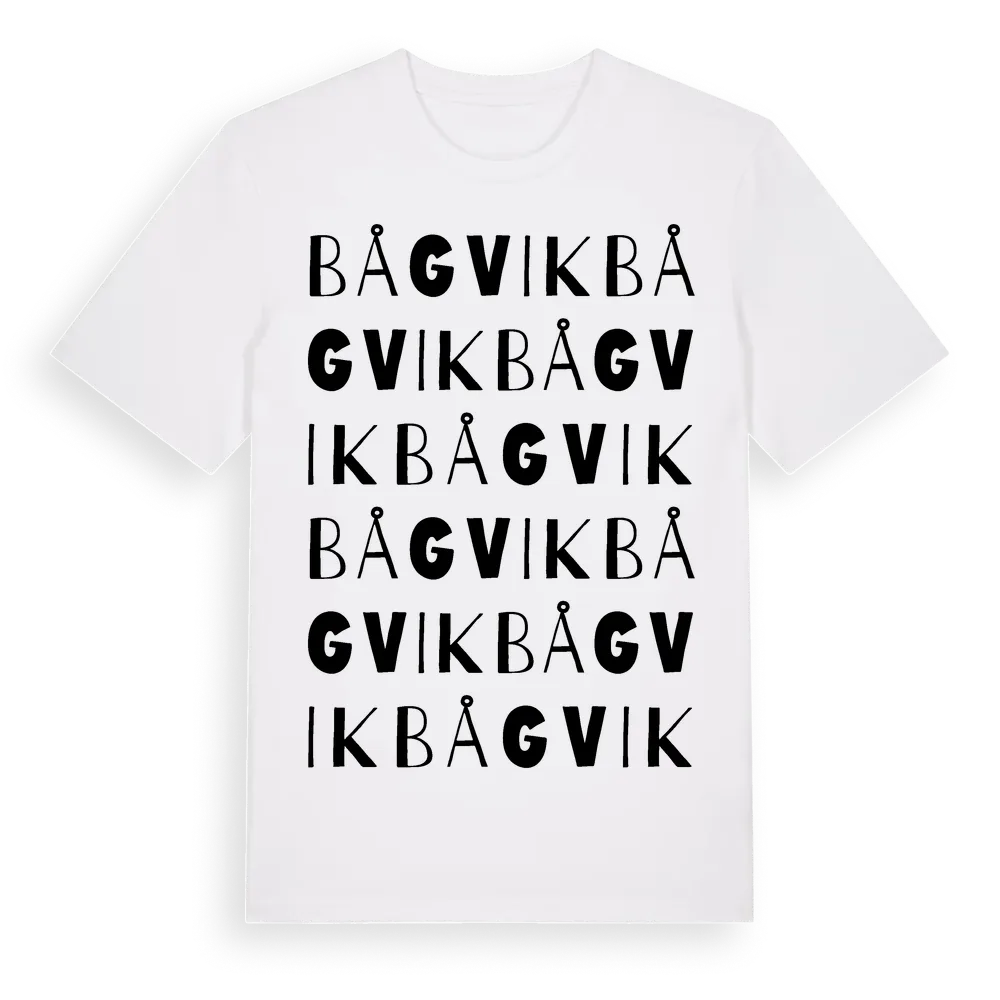 Bågvik ordlek t-shirt är inspirerad av byn Bågvik i Kalmar län, Sverige. Tröjan är designad för dig som har en speciell koppling till platsen – oavsett om du bor här, har rötterna här eller bara älskar Bågvik.