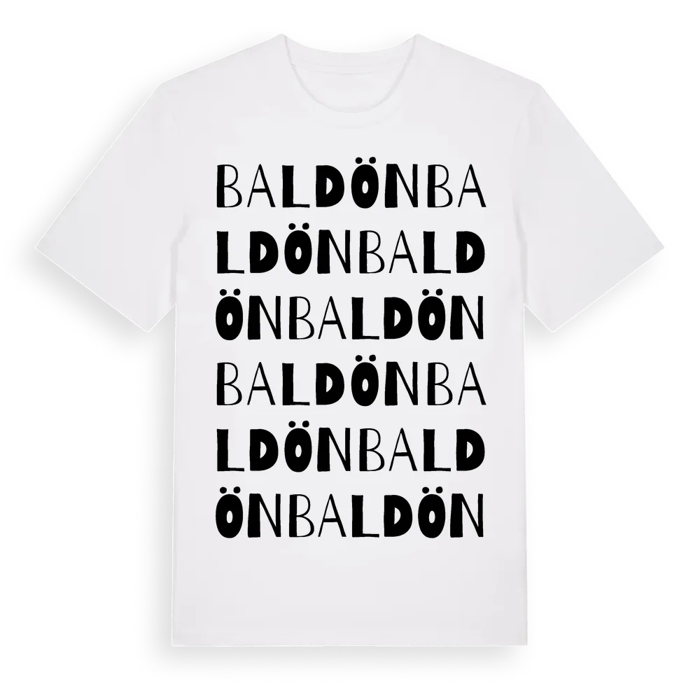 Baldön ordlek t-shirt är inspirerad av byn Baldön i Kalmar län, Sverige. Tröjan är designad för dig som har en speciell koppling till platsen – oavsett om du bor här, har rötterna här eller bara älskar Baldön.