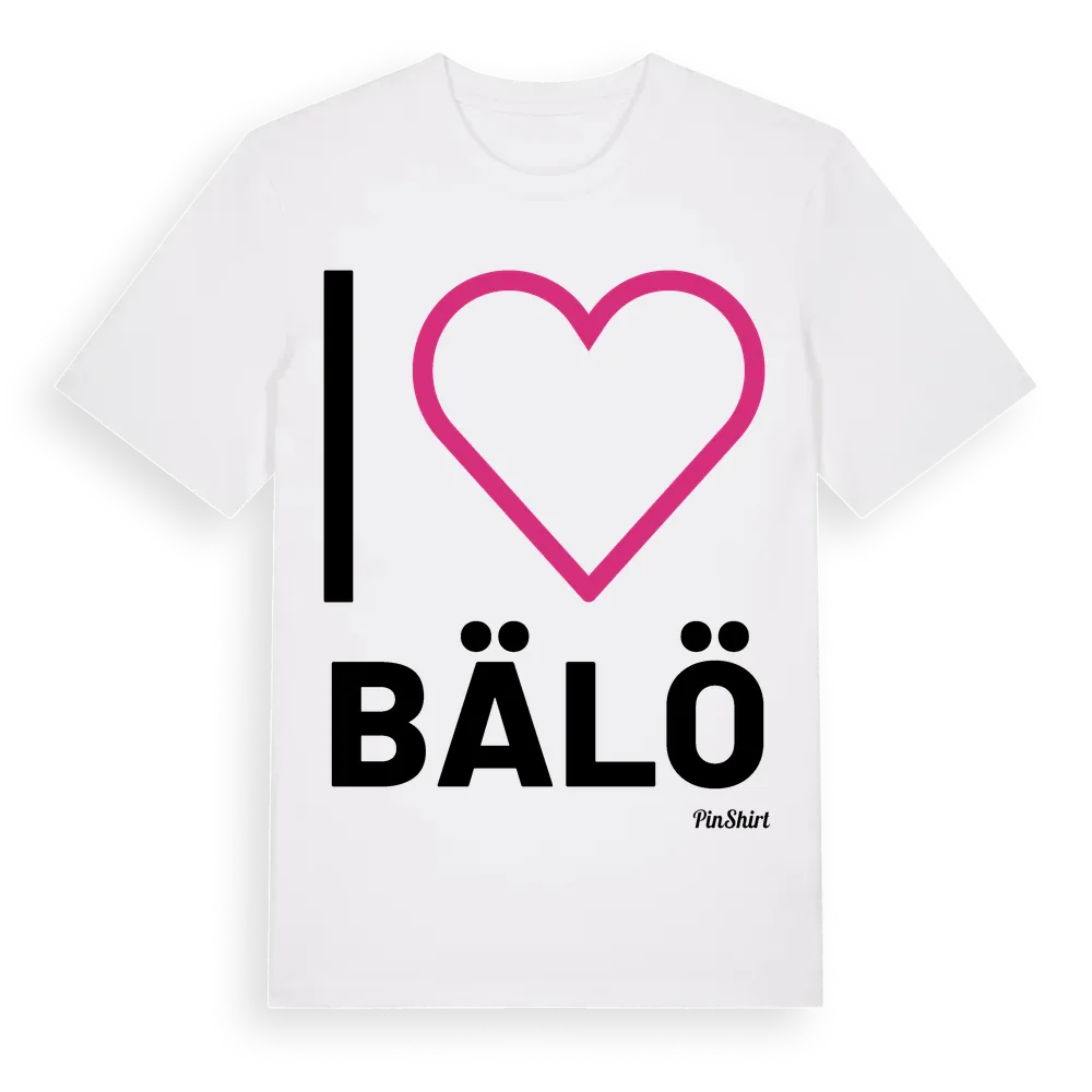 Det klassiska "I ❤ Bälö"-motivet i stort format som täcker hela bröstet. För dig som vill visa kärleken till Bälö på riktigt. Premium bomull, unisex – från Bälö i Kalmar län.