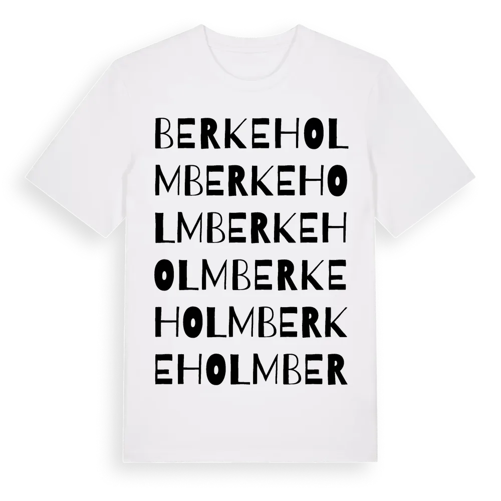 Berkeholm ordlek t-shirt är inspirerad av Berkeholm i Kalmar län, Sverige. Tröjan är designad för dig som har en speciell koppling till platsen – oavsett om du bor här, har rötterna här eller bara älskar Berkeholm.
