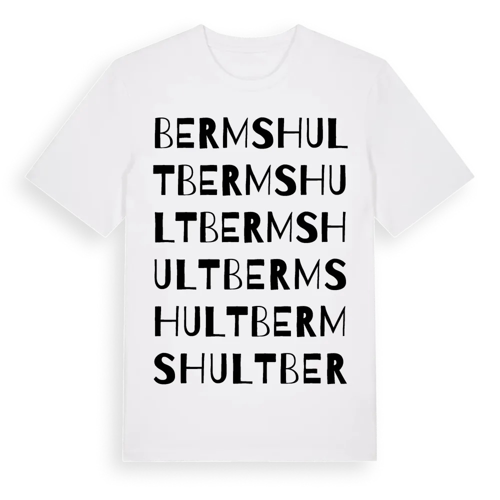 Bermshult ordlek t-shirt är inspirerad av byn Bermshult i Kalmar län, Sverige. Tröjan är designad för dig som har en speciell koppling till platsen – oavsett om du bor här, har rötterna här eller bara älskar Bermshult.