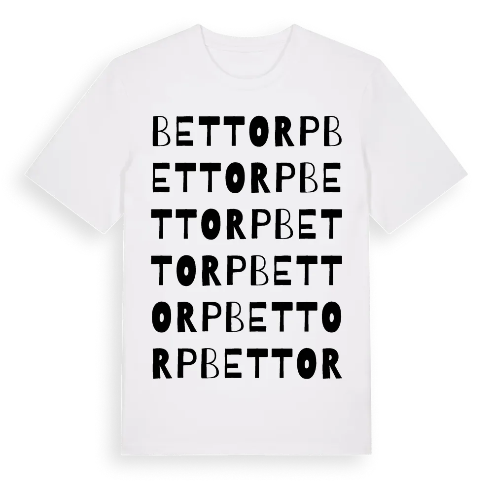 En ordlek byggd på Bettorps namn. Subtilt och klurig – ett motiv som bara de som verkligen känner platsen fullt ut förstår. Premium bomull, unisex – från byn Bettorp i Kalmar län.