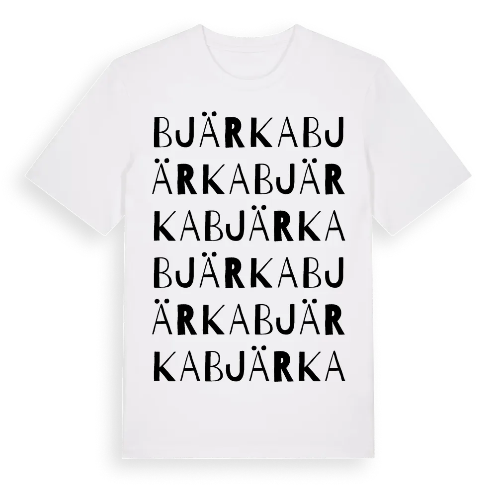 Bjärka ordlek t-shirt är inspirerad av byn Bjärka i Kalmar län, Sverige. Tröjan är designad för dig som har en speciell koppling till platsen – oavsett om du bor här, har rötterna här eller bara älskar Bjärka.