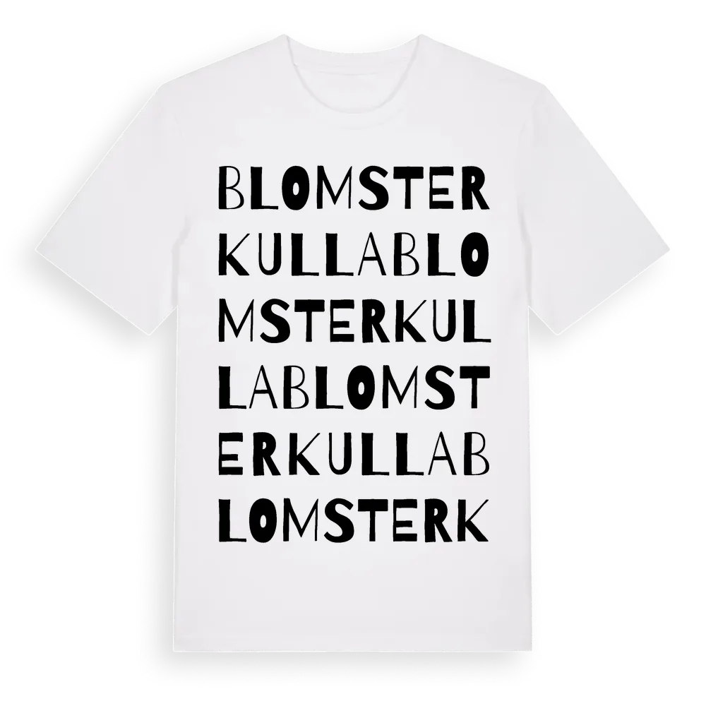 Blomsterkulla ordlek t-shirt är inspirerad av Blomsterkulla i Kalmar län, Sverige. Tröjan är designad för dig som har en speciell koppling till platsen – oavsett om du bor här, har rötterna här eller bara älskar Blomsterkulla.