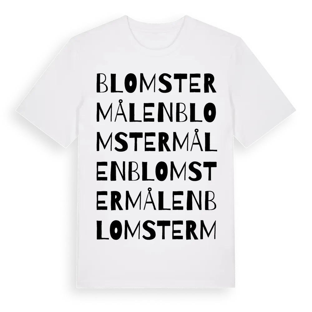 Blomstermålen ordlek t-shirt är inspirerad av stadsdelen Blomstermålen i Kalmar län, Sverige. Tröjan är designad för dig som har en speciell koppling till platsen – oavsett om du bor här, har rötterna här eller bara älskar Blomstermålen.