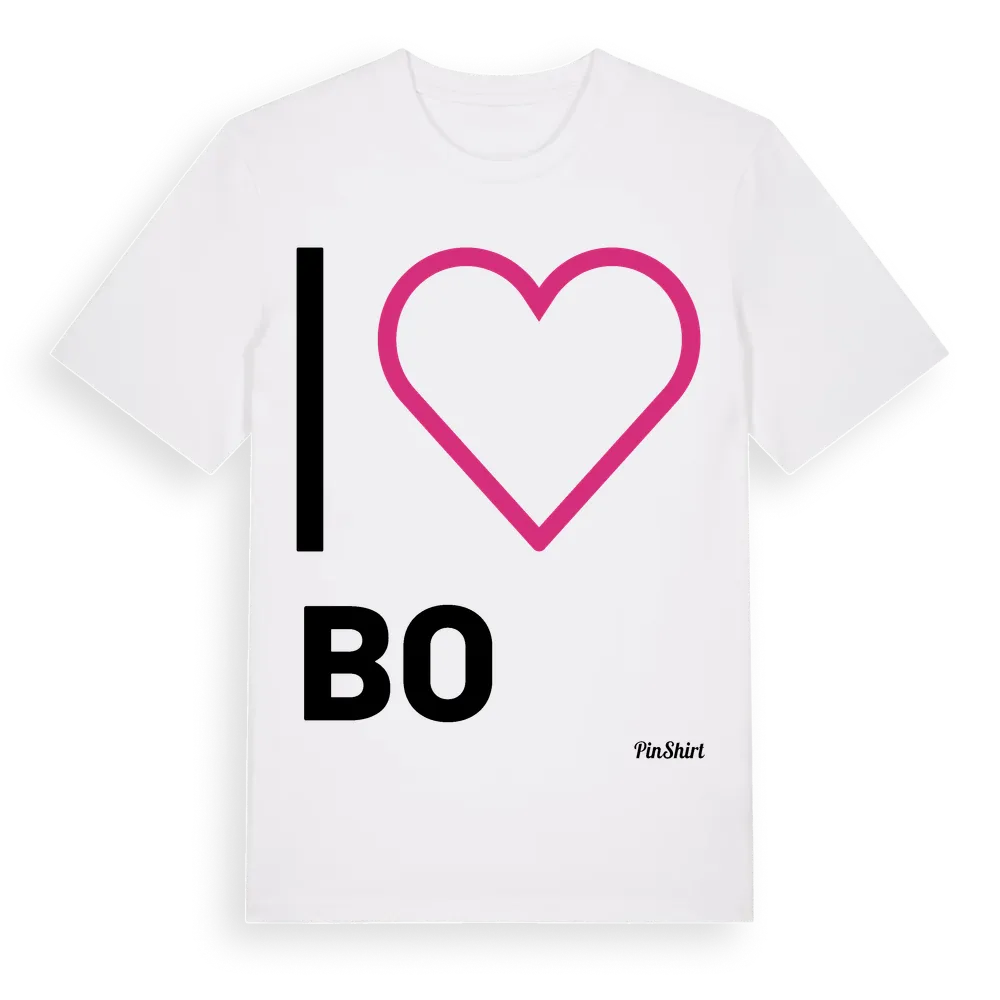 Det klassiska "I ❤ Bo"-motivet i stort format som täcker hela bröstet. För dig som vill visa kärleken till Bo på riktigt. Premium bomull, unisex – från Bo i Kalmar län.