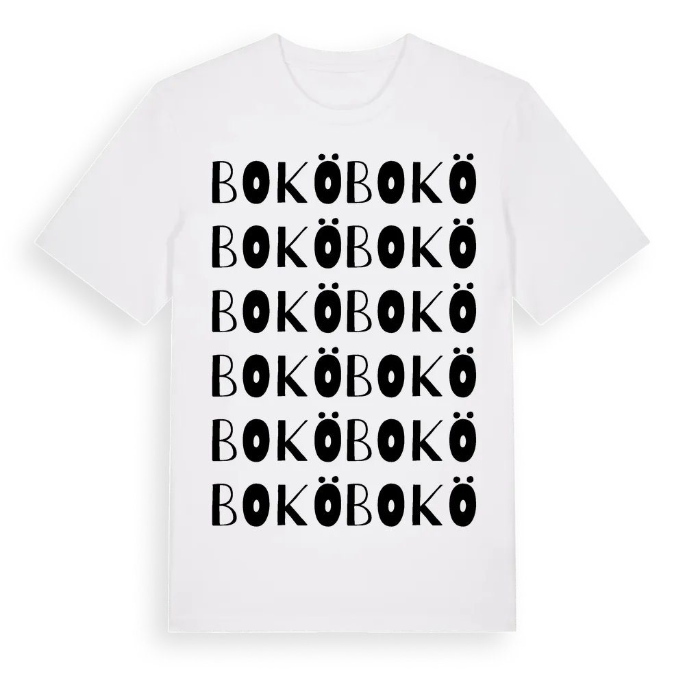 En ordlek byggd på Bokös namn. Subtilt och klurig – ett motiv som bara de som verkligen känner platsen fullt ut förstår. Premium bomull, unisex – från ön Bokö i Kalmar län.