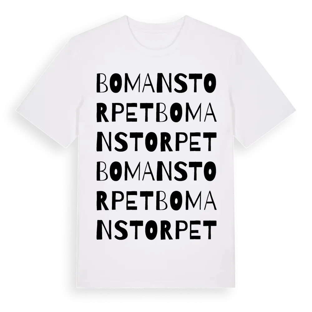 Bomanstorpet ordlek t-shirt är inspirerad av Bomanstorpet i Kalmar län, Sverige. Tröjan är designad för dig som har en speciell koppling till platsen – oavsett om du bor här, har rötterna här eller bara älskar Bomanstorpet.