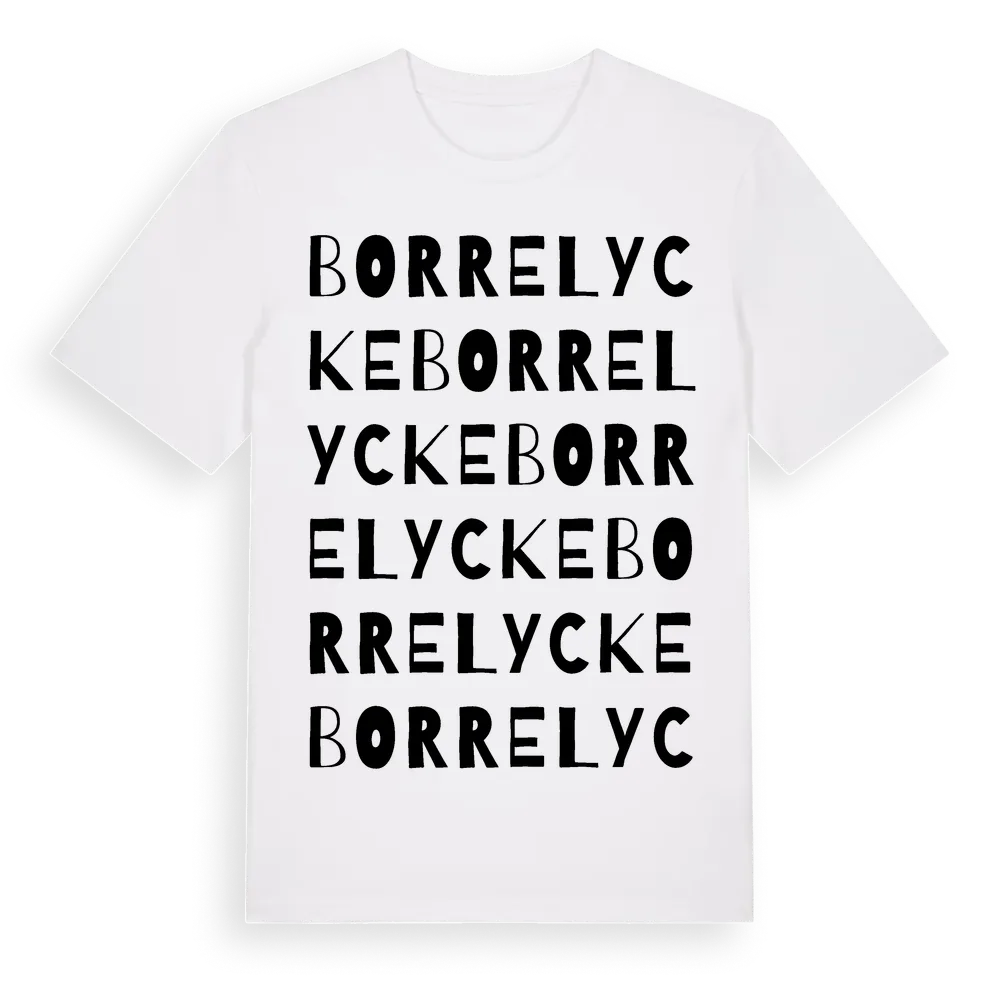 Borrelycke ordlek t-shirt är inspirerad av byn Borrelycke i Kalmar län, Sverige. Tröjan är designad för dig som har en speciell koppling till platsen – oavsett om du bor här, har rötterna här eller bara älskar Borrelycke.