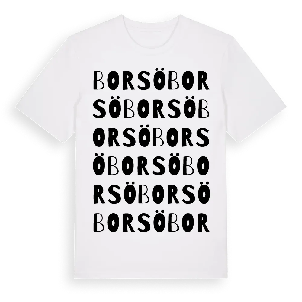 Borsö ordlek t-shirt är inspirerad av ön Borsö i Kalmar län, Sverige. Tröjan är designad för dig som har en speciell koppling till platsen – oavsett om du bor här, har rötterna här eller bara älskar Borsö.