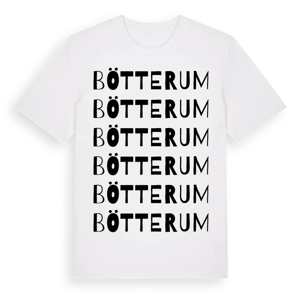 Bötterum ordlek t-shirt är inspirerad av Bötterum i Kalmar län, Sverige. Tröjan är designad för dig som har en speciell koppling till platsen – oavsett om du bor här, har rötterna här eller bara älskar Bötterum.