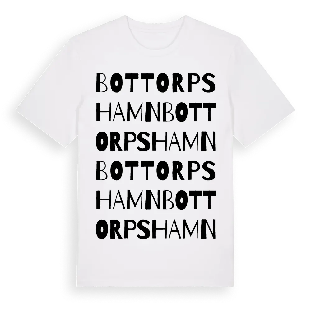 Bottorps Hamn ordlek t-shirt är inspirerad av Bottorps Hamn i Kalmar län, Sverige. Tröjan är designad för dig som har en speciell koppling till platsen – oavsett om du bor här, har rötterna här eller bara älskar Bottorps Hamn.