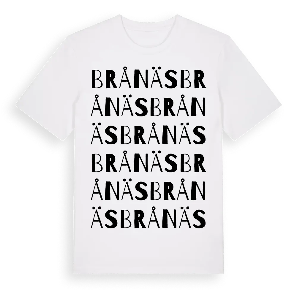 Brånäs ordlek t-shirt är inspirerad av byn Brånäs i Kalmar län, Sverige. Tröjan är designad för dig som har en speciell koppling till platsen – oavsett om du bor här, har rötterna här eller bara älskar Brånäs.