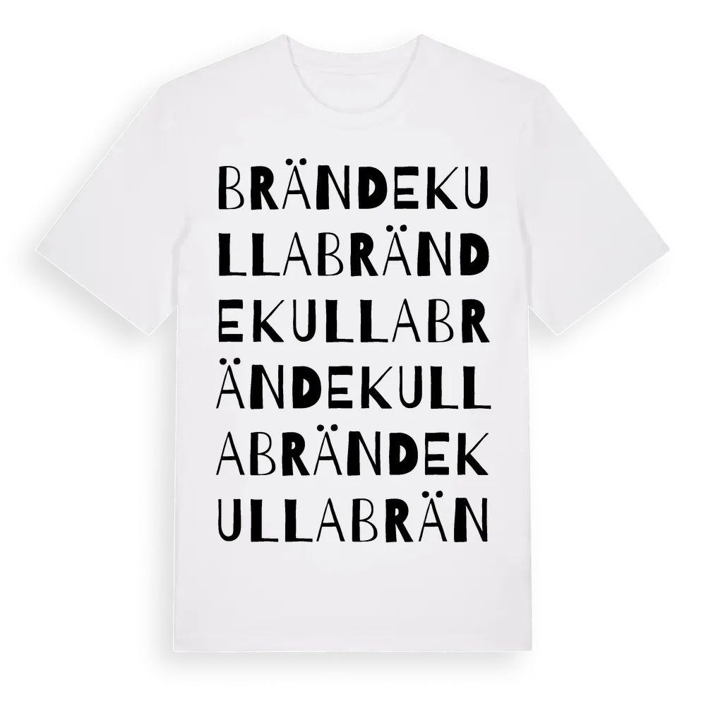 Brändekulla ordlek t-shirt är inspirerad av Brändekulla i Kalmar län, Sverige. Tröjan är designad för dig som har en speciell koppling till platsen – oavsett om du bor här, har rötterna här eller bara älskar Brändekulla.