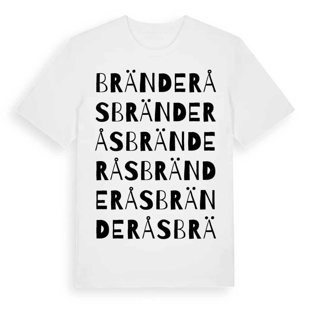 Bränderås ordlek t-shirt är inspirerad av byn Bränderås i Kalmar län, Sverige. Tröjan är designad för dig som har en speciell koppling till platsen – oavsett om du bor här, har rötterna här eller bara älskar Bränderås.