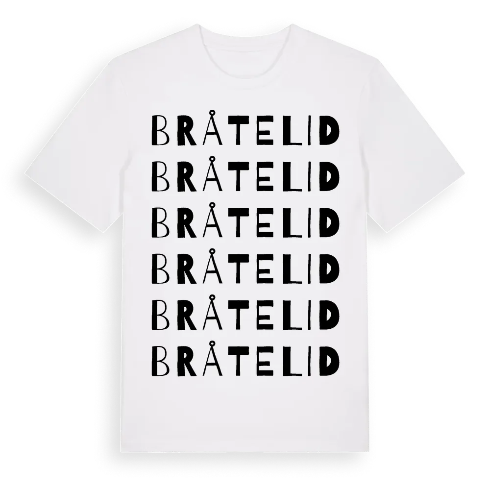 Bråtelid ordlek t-shirt är inspirerad av Bråtelid i Kalmar län, Sverige. Tröjan är designad för dig som har en speciell koppling till platsen – oavsett om du bor här, har rötterna här eller bara älskar Bråtelid.