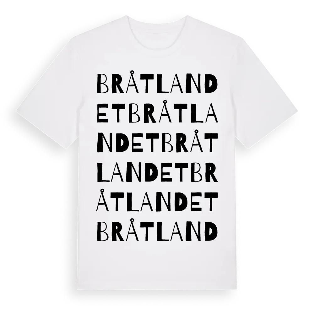 Bråtlandet ordlek t-shirt är inspirerad av Bråtlandet i Kalmar län, Sverige. Tröjan är designad för dig som har en speciell koppling till platsen – oavsett om du bor här, har rötterna här eller bara älskar Bråtlandet.