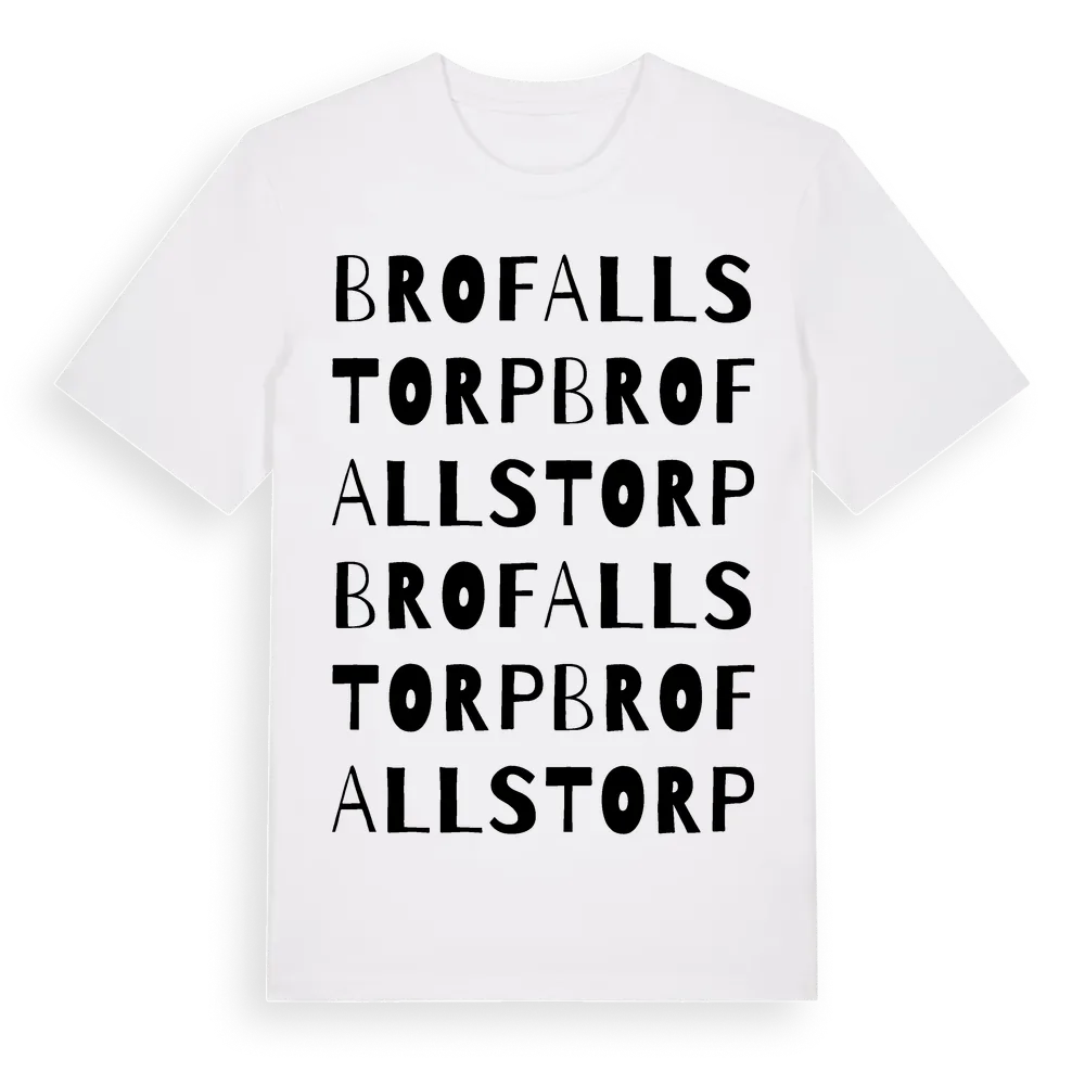 Brofallstorp ordlek t-shirt är inspirerad av Brofallstorp i Kalmar län, Sverige. Tröjan är designad för dig som har en speciell koppling till platsen – oavsett om du bor här, har rötterna här eller bara älskar Brofallstorp.