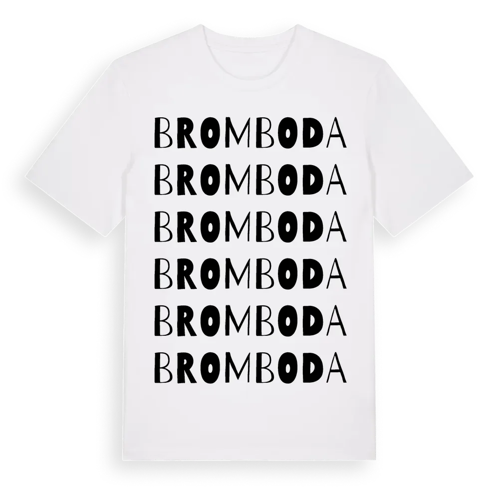En ordlek byggd på Brombodas namn. Subtilt och klurig – ett motiv som bara de som verkligen känner platsen fullt ut förstår. Premium bomull, unisex – från byn Bromboda i Kalmar län.