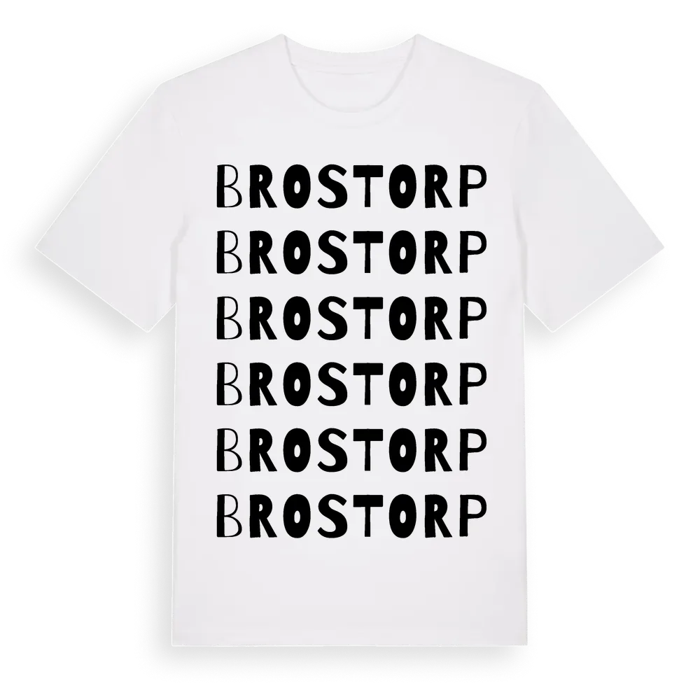 Brostorp ordlek t-shirt är inspirerad av byn Brostorp i Kalmar län, Sverige. Tröjan är designad för dig som har en speciell koppling till platsen – oavsett om du bor här, har rötterna här eller bara älskar Brostorp.