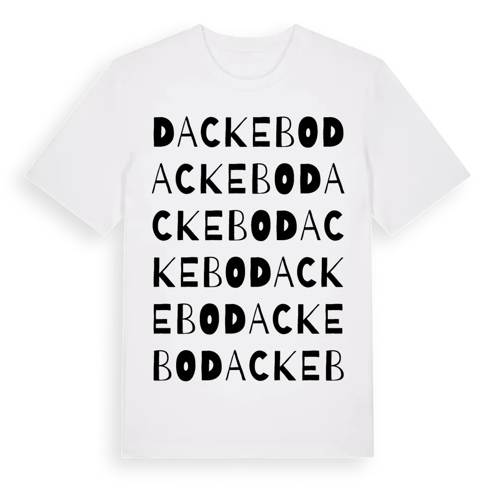 Dackebo ordlek t-shirt är inspirerad av Dackebo i Kalmar län, Sverige. Tröjan är designad för dig som har en speciell koppling till platsen – oavsett om du bor här, har rötterna här eller bara älskar Dackebo.