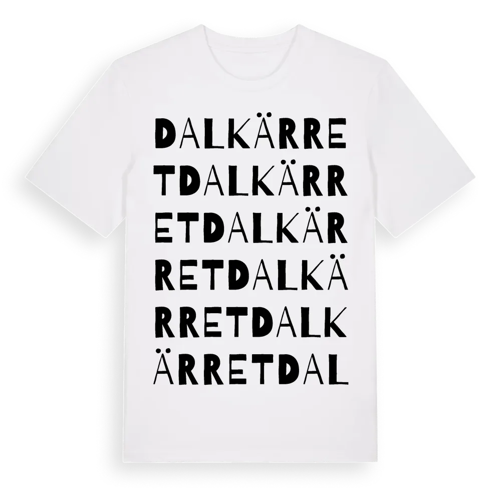 Dalkärret ordlek t-shirt är inspirerad av Dalkärret i Kalmar län, Sverige. Tröjan är designad för dig som har en speciell koppling till platsen – oavsett om du bor här, har rötterna här eller bara älskar Dalkärret.