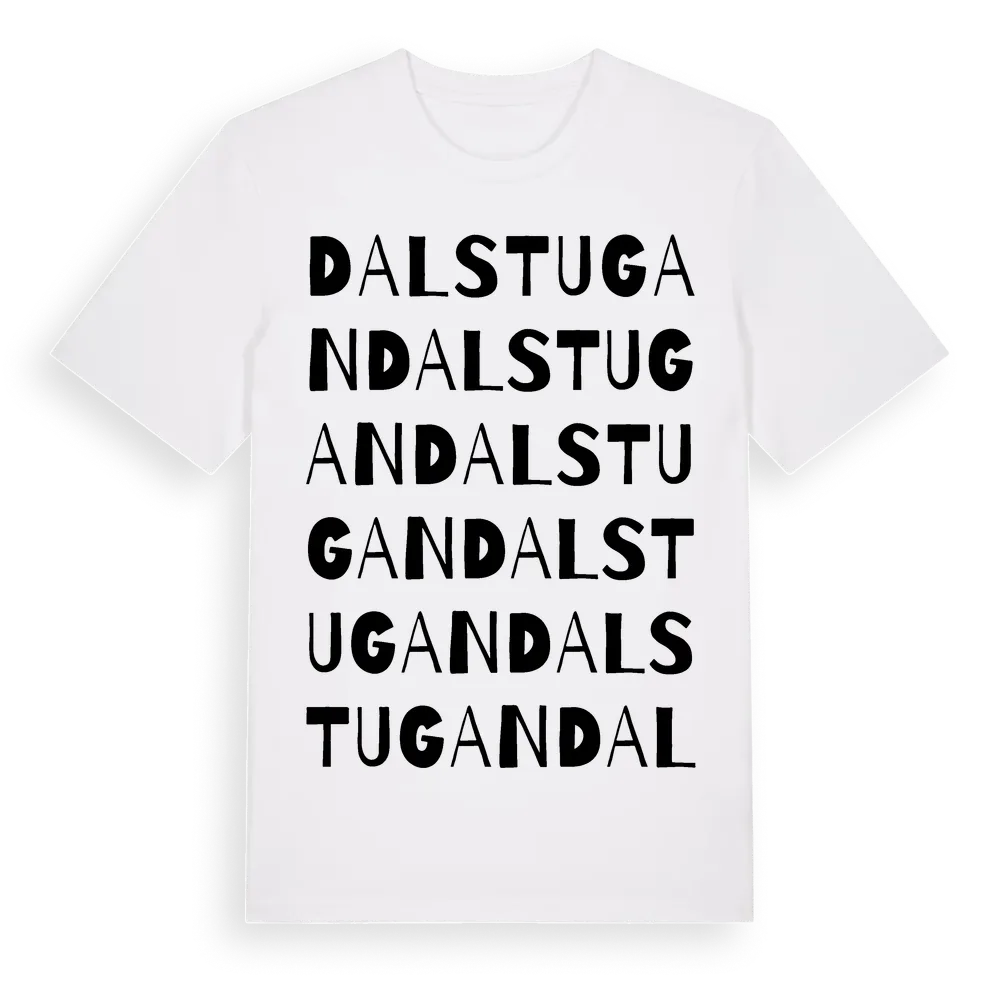 Dalstugan ordlek t-shirt är inspirerad av Dalstugan i Kalmar län, Sverige. Tröjan är designad för dig som har en speciell koppling till platsen – oavsett om du bor här, har rötterna här eller bara älskar Dalstugan.
