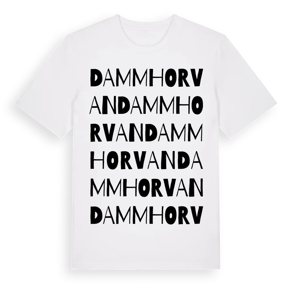 Dammhorvan ordlek t-shirt är inspirerad av Dammhorvan i Kalmar län, Sverige. Tröjan är designad för dig som har en speciell koppling till platsen – oavsett om du bor här, har rötterna här eller bara älskar Dammhorvan.