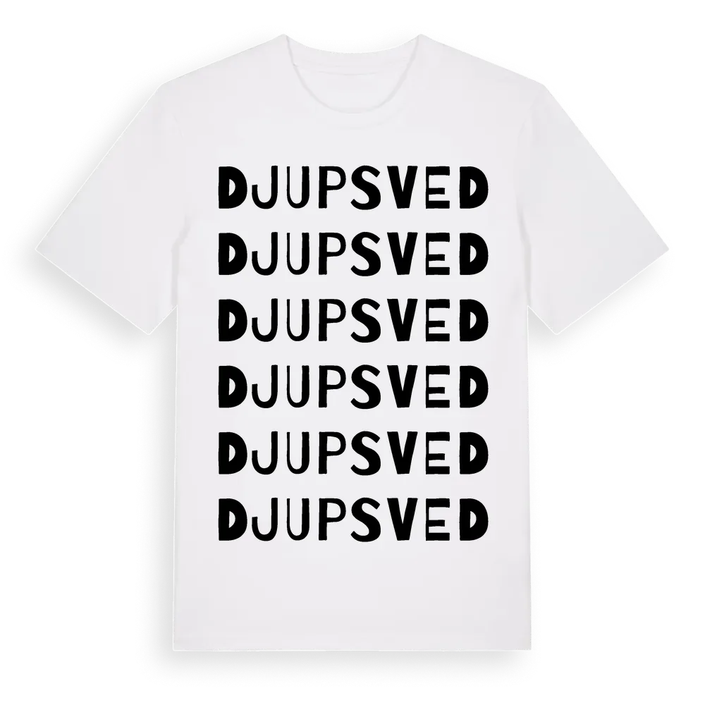 Djupsved ordlek t-shirt är inspirerad av Djupsved i Kalmar län, Sverige. Tröjan är designad för dig som har en speciell koppling till platsen – oavsett om du bor här, har rötterna här eller bara älskar Djupsved.