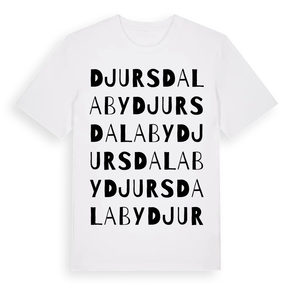 Djursdala By ordlek t-shirt är inspirerad av byn Djursdala By i Kalmar län, Sverige. Tröjan är designad för dig som har en speciell koppling till platsen – oavsett om du bor här, har rötterna här eller bara älskar Djursdala By.
