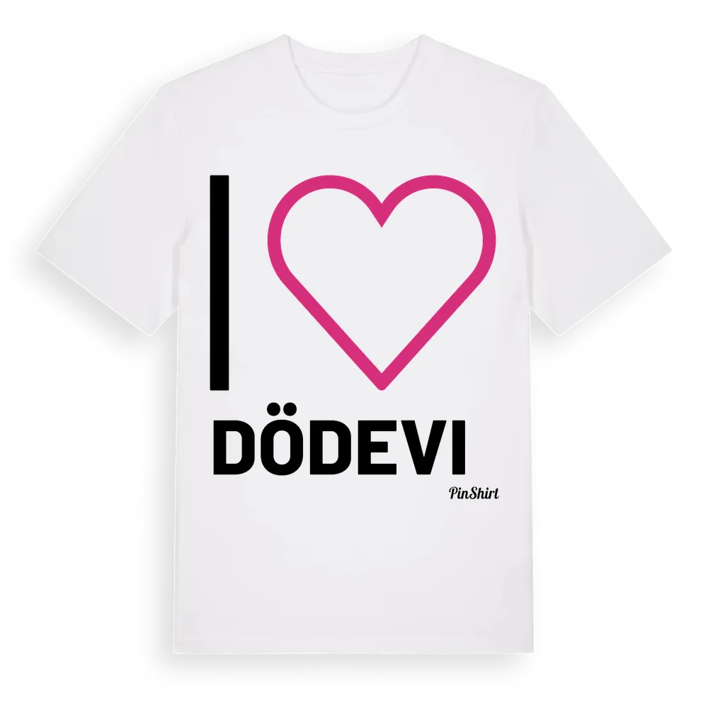 Det klassiska "I ❤ Dödevi"-motivet i stort format som täcker hela bröstet. För dig som vill visa kärleken till Dödevi på riktigt. Premium bomull, unisex – från byn Dödevi i Kalmar län.