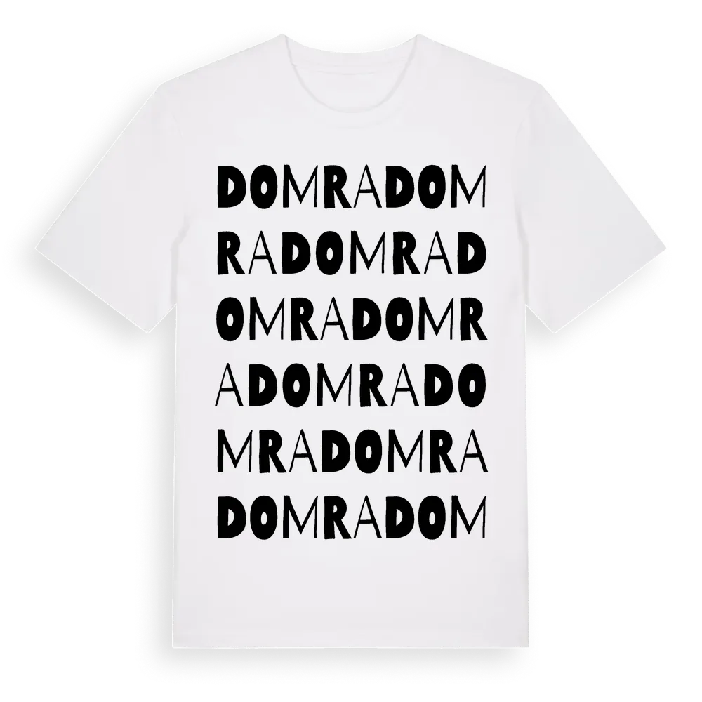 Domra ordlek t-shirt är inspirerad av byn Domra i Kalmar län, Sverige. Tröjan är designad för dig som har en speciell koppling till platsen – oavsett om du bor här, har rötterna här eller bara älskar Domra.