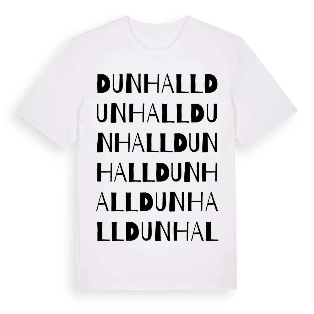 Dunhall ordlek t-shirt är inspirerad av Dunhall i Kalmar län, Sverige. Tröjan är designad för dig som har en speciell koppling till platsen – oavsett om du bor här, har rötterna här eller bara älskar Dunhall.