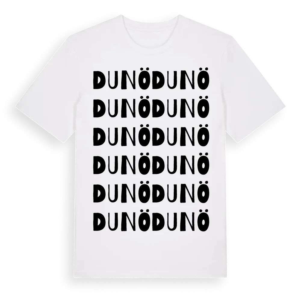 En ordlek byggd på Dunös namn. Subtilt och klurig – ett motiv som bara de som verkligen känner platsen fullt ut förstår. Premium bomull, unisex – från Dunö i Kalmar län.