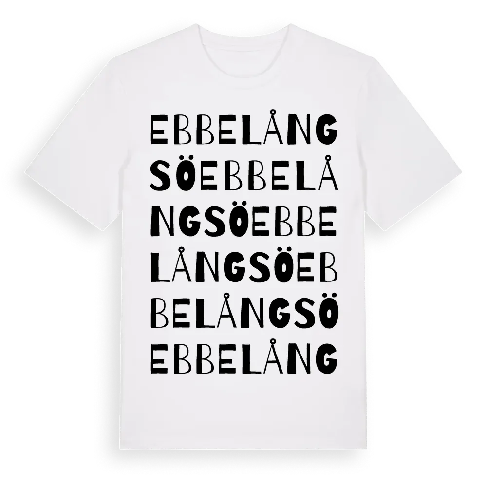 Ebbelångsö ordlek t-shirt är inspirerad av byn Ebbelångsö i Kalmar län, Sverige. Tröjan är designad för dig som har en speciell koppling till platsen – oavsett om du bor här, har rötterna här eller bara älskar Ebbelångsö.