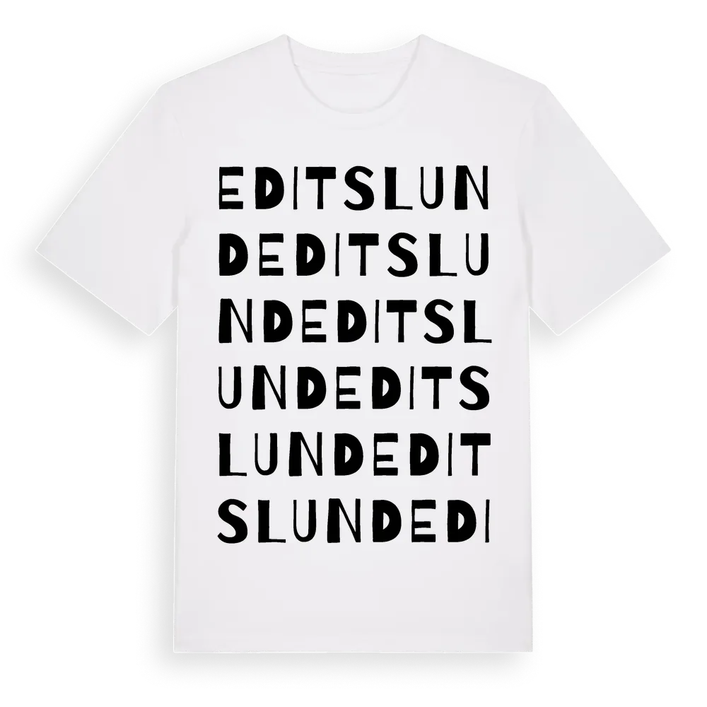 Editslund ordlek t-shirt är inspirerad av Editslund i Kalmar län, Sverige. Tröjan är designad för dig som har en speciell koppling till platsen – oavsett om du bor här, har rötterna här eller bara älskar Editslund.