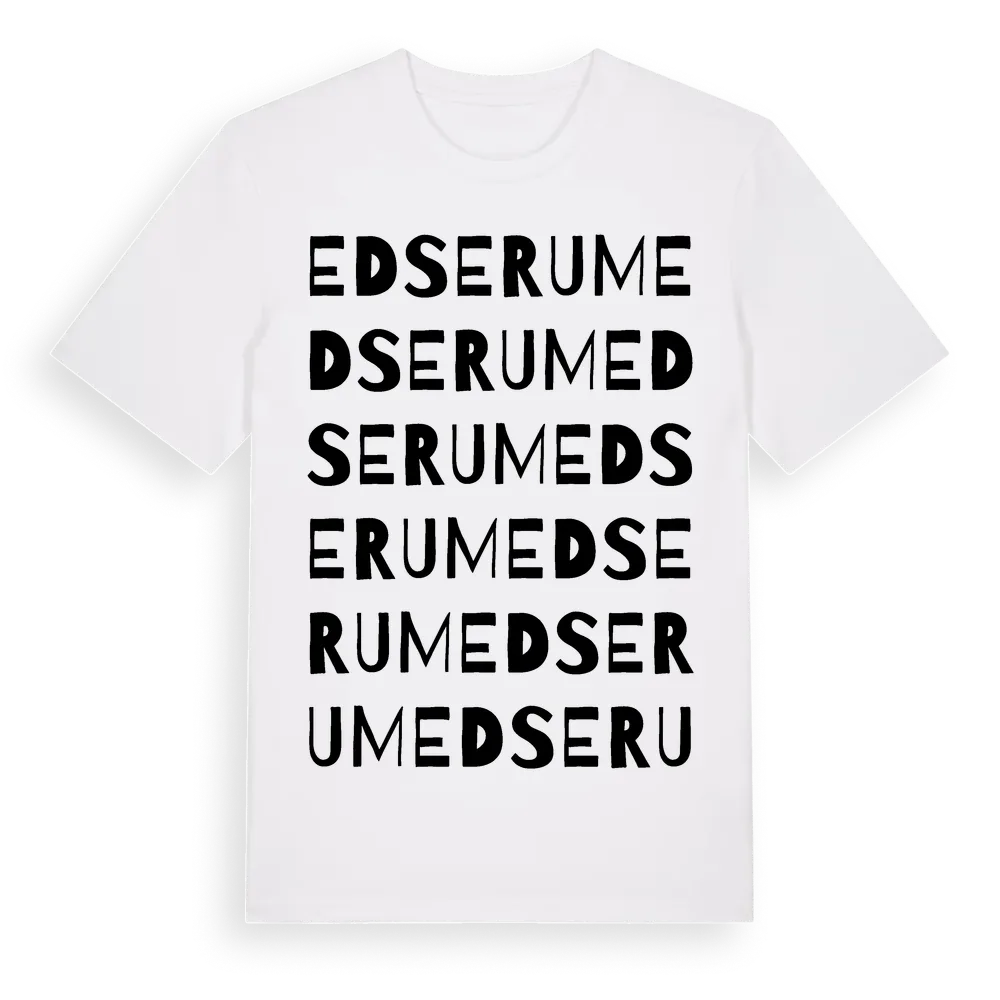 Edserum ordlek t-shirt är inspirerad av Edserum i Kalmar län, Sverige. Tröjan är designad för dig som har en speciell koppling till platsen – oavsett om du bor här, har rötterna här eller bara älskar Edserum.