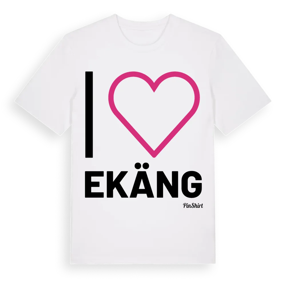 Jag älskar Ekäng t-shirt stort tryck är inspirerad av Ekäng i Kalmar län, Sverige. Tröjan är designad för dig som har en speciell koppling till platsen – oavsett om du bor här, har rötterna här eller bara älskar Ekäng.