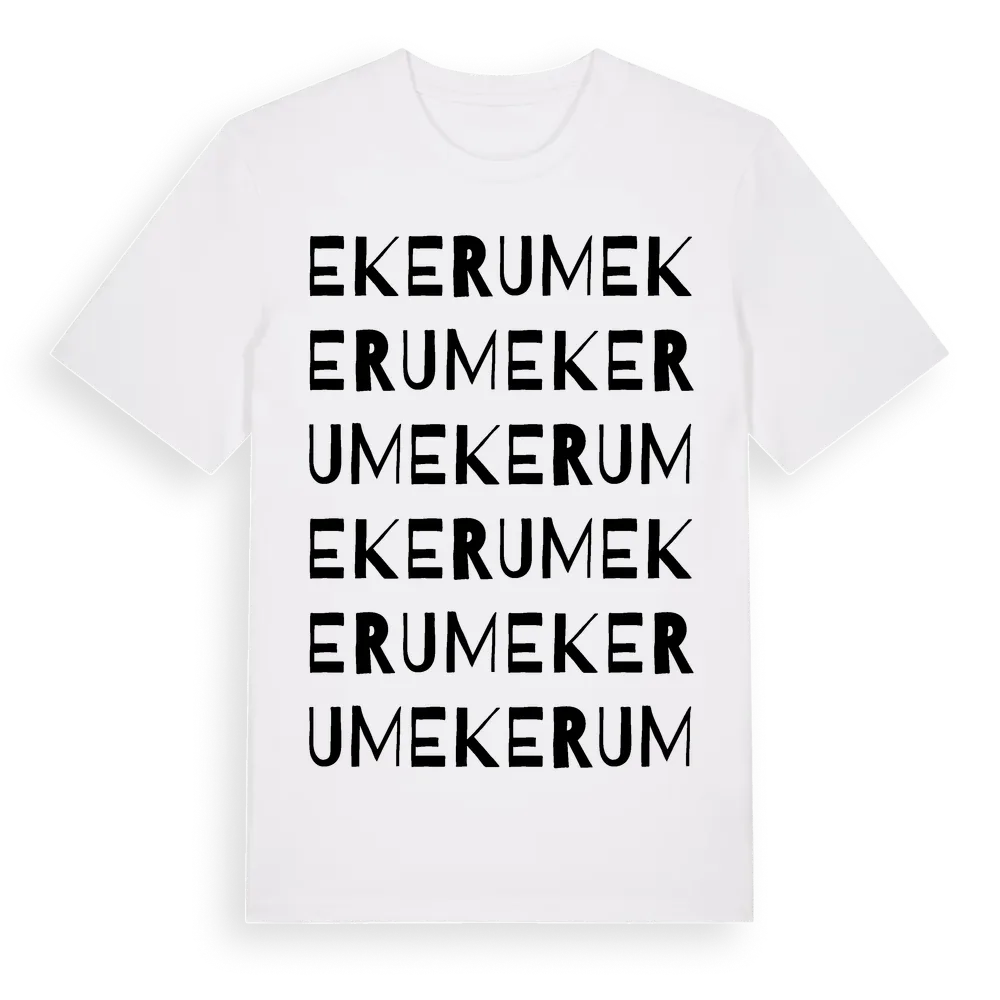 Ekerum ordlek t-shirt är inspirerad av byn Ekerum i Kalmar län, Sverige. Tröjan är designad för dig som har en speciell koppling till platsen – oavsett om du bor här, har rötterna här eller bara älskar Ekerum.