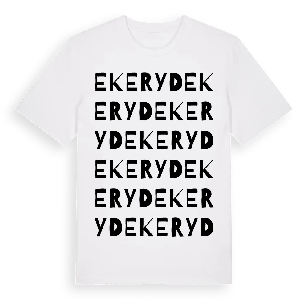 Ekeryd ordlek t-shirt är inspirerad av Ekeryd i Kalmar län, Sverige. Tröjan är designad för dig som har en speciell koppling till platsen – oavsett om du bor här, har rötterna här eller bara älskar Ekeryd.